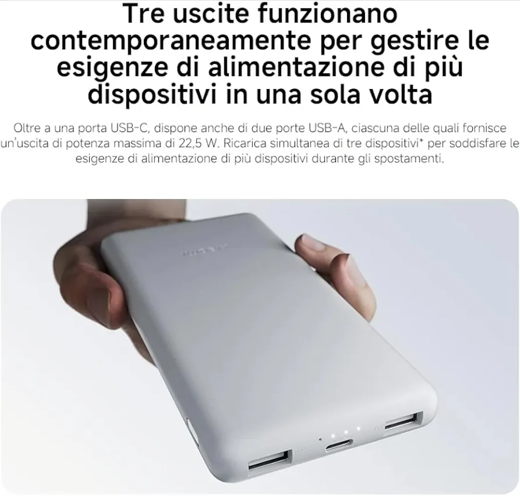 Xiaomi PowerBank 22.5W, 10000 mAh, Lite-Ricarica Rapida, Bianco—